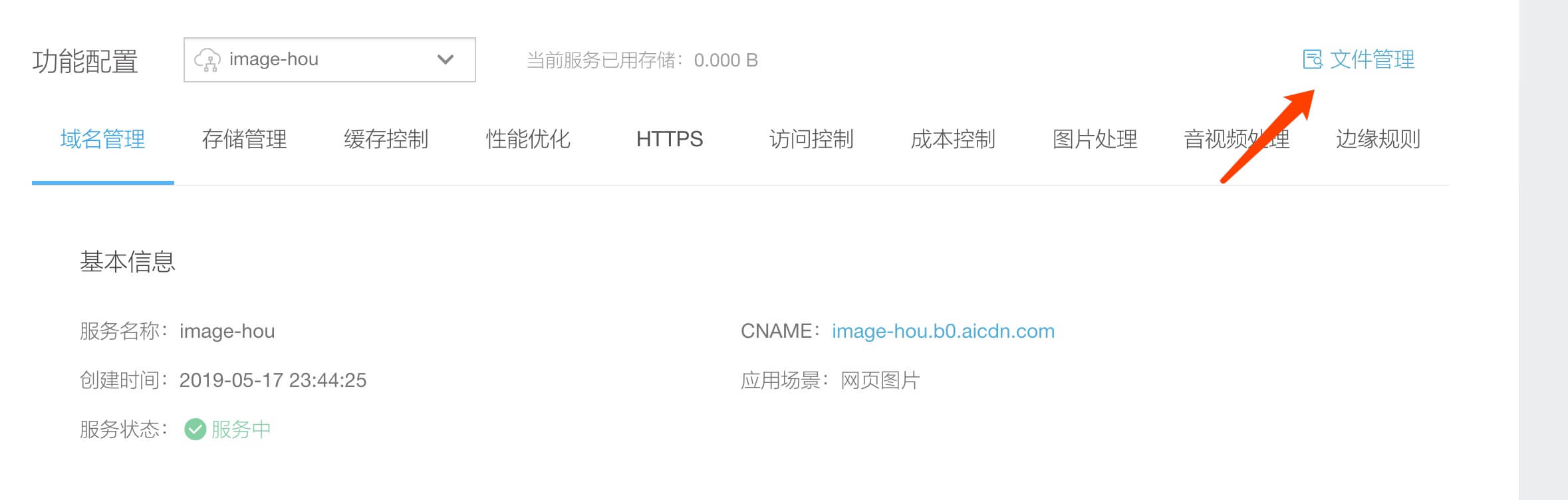 至此,配置已经基本完成。可以点击右上角的文件管理,上传图片等静态文件,并获取外链,插入博客/网站。