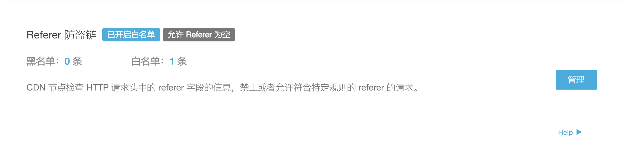 在访问控制栏目中,打开Referer防盗链,将自己的域名添加到白名单,建议允许referer为空(浏览器直接访问)。