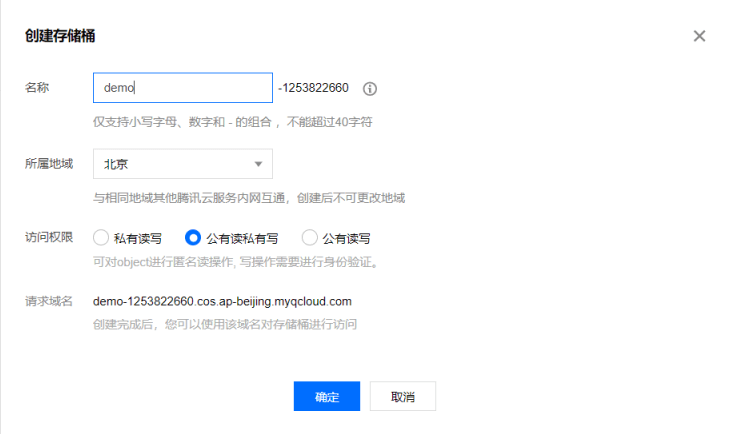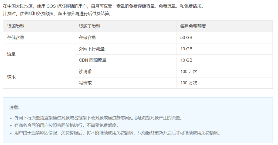 免费额度只适用于中国大陆,所以创建存储桶的时候要选择北京、上海、广州、成都和重庆,具体的可以参考这里。