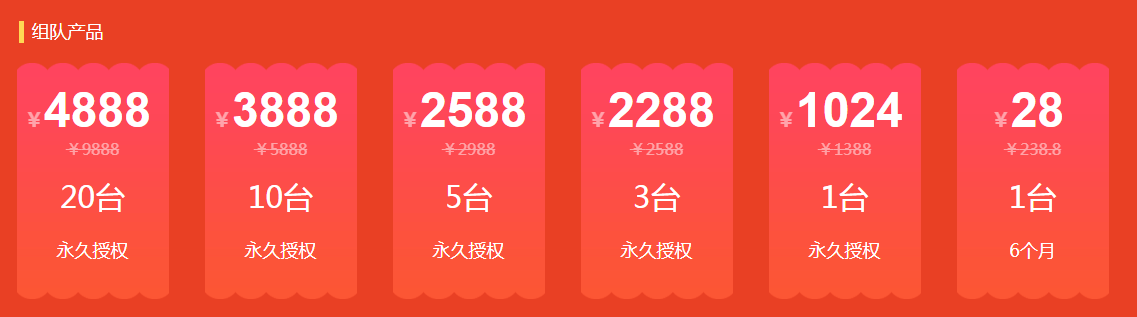 2、可以选择任一产品进行组队,组队成功,根据选择组队购买的产品发放授权抵扣券。