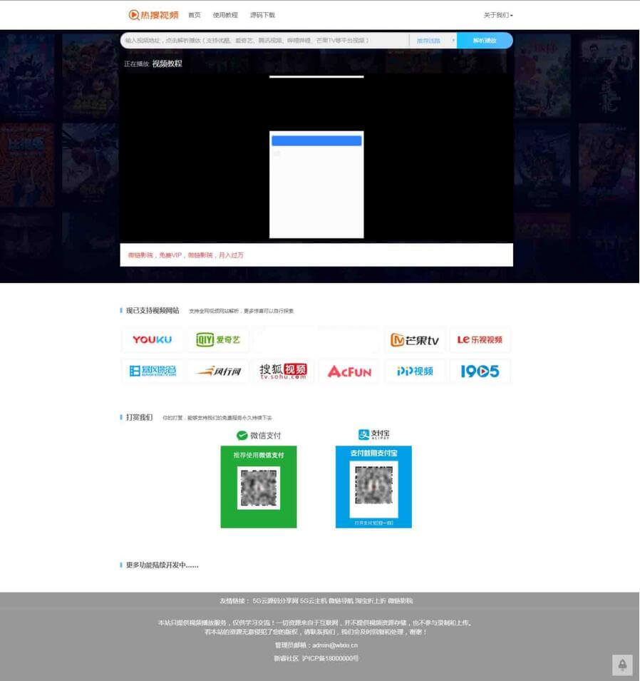 PHP简单清爽风格VIP视频解析网站源码比较简单, 直接上传到服务器即可使用,带后台可以自主在后台更换解析接口。在后台也带了很多广告位,如果有需要也可以自己添加广告。下载地址:https://www.lanzouy.com/i70w5od