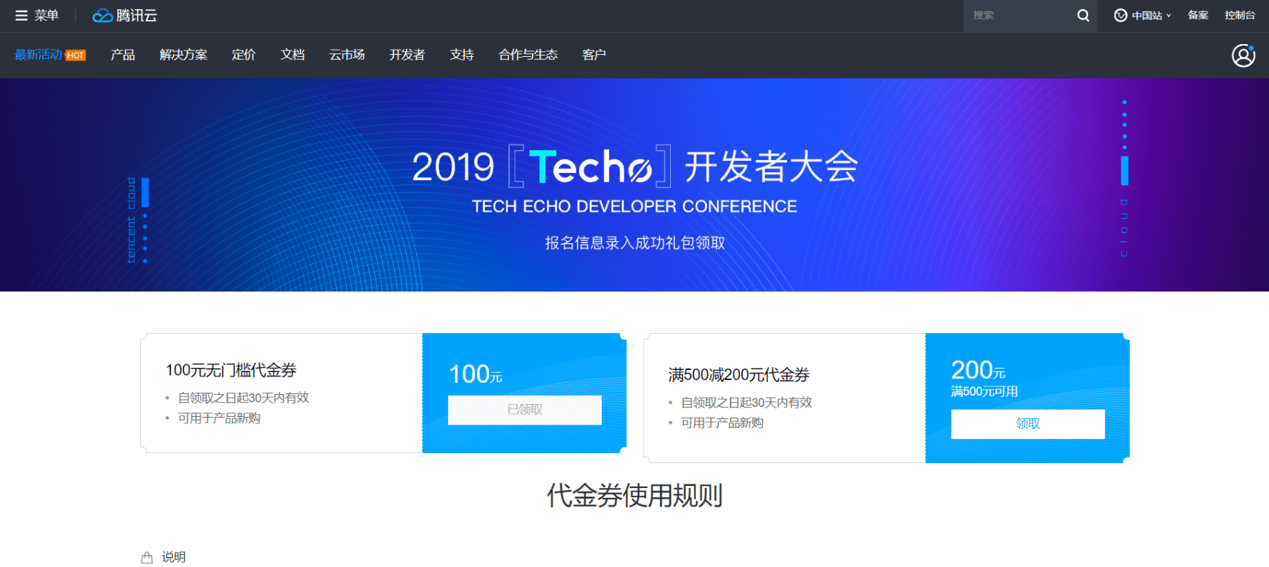直接领取链接:https://cloud.tencent.com/act/pro/Techodeveloper