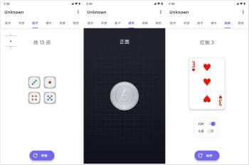 Unknown是一款随机事件工具,采用简洁的设计,超多有趣功能,随机数、列表、骰子、抛硬币、纸牌等等,是一款聚会喝酒必备的神器,随时随地与你的朋友们一起玩。 下载地址:https://www.lanzouy.com/i7wnj5g