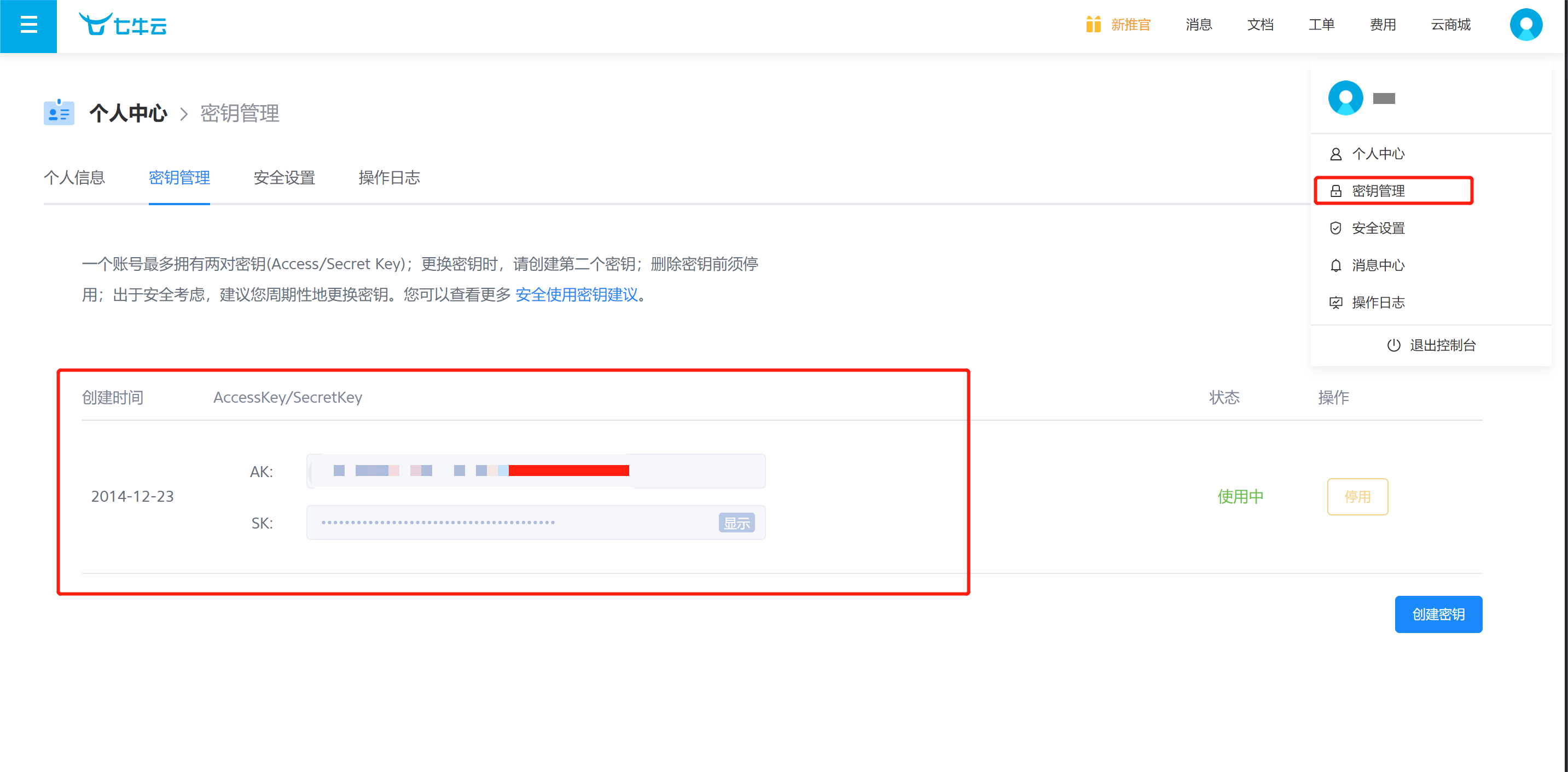 获取配置需要有七牛的账号,并通过实名认证,若果没有账号点击链接去注册, 点击前往七牛官网注册