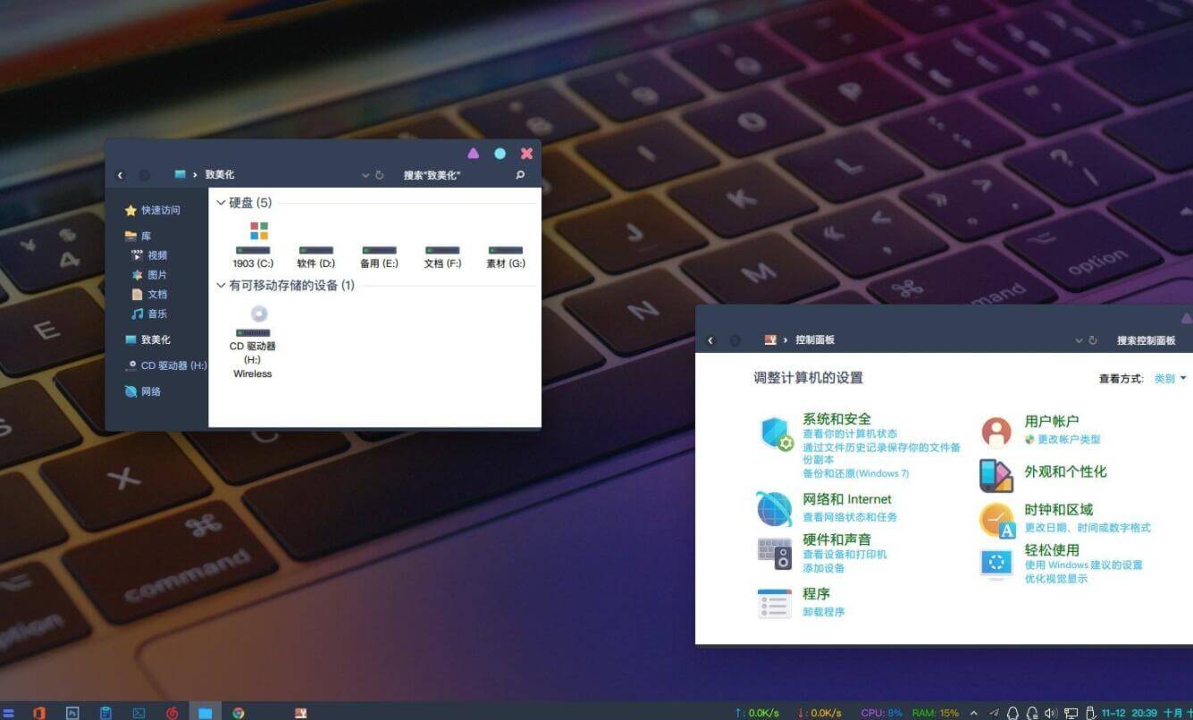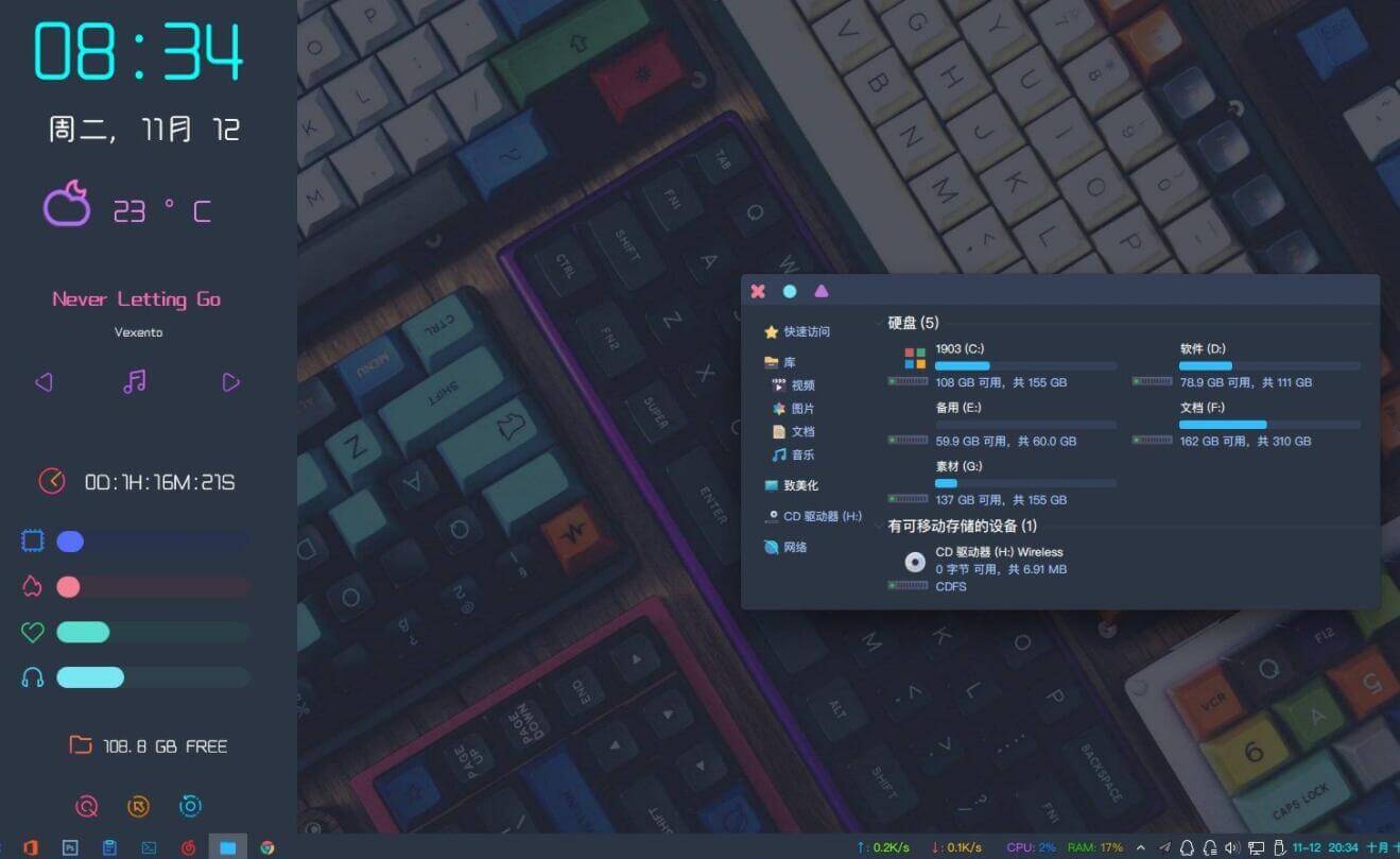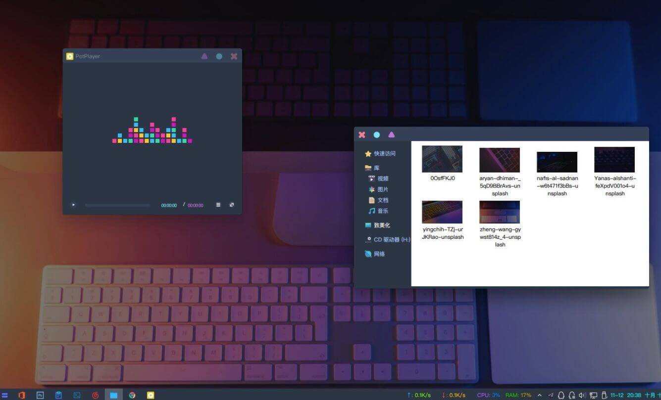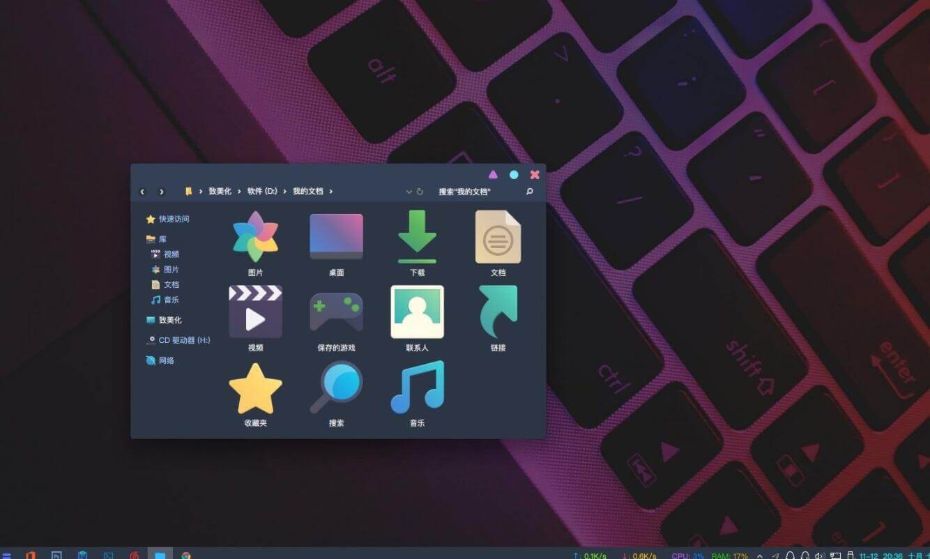 Gruvy主题的升级版,在此基础上DIY了按钮样式,增加了开始菜单皮肤及配套的播放器皮肤和雨滴皮肤;暗黑版需要DarkMode支持(1809+),主题灵感来自:Fuzum、EmpressNoodle!