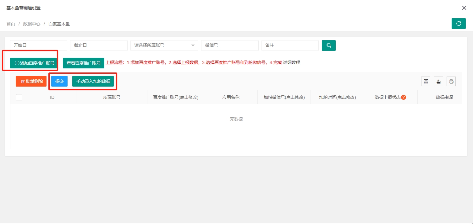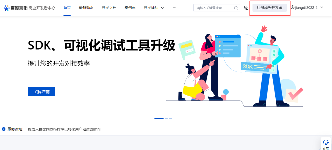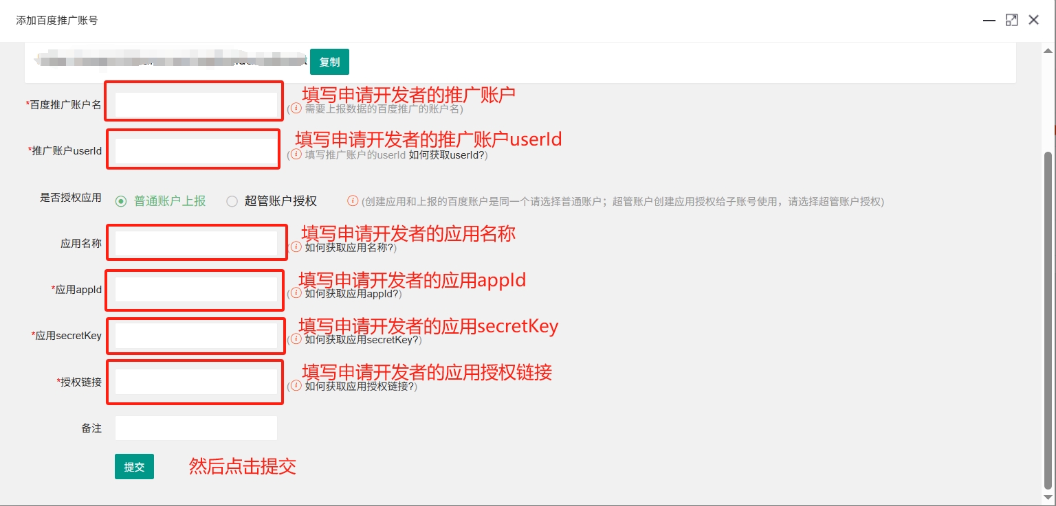 注意:上报百度基木鱼需要先开通百度推广账号的开发者功能!