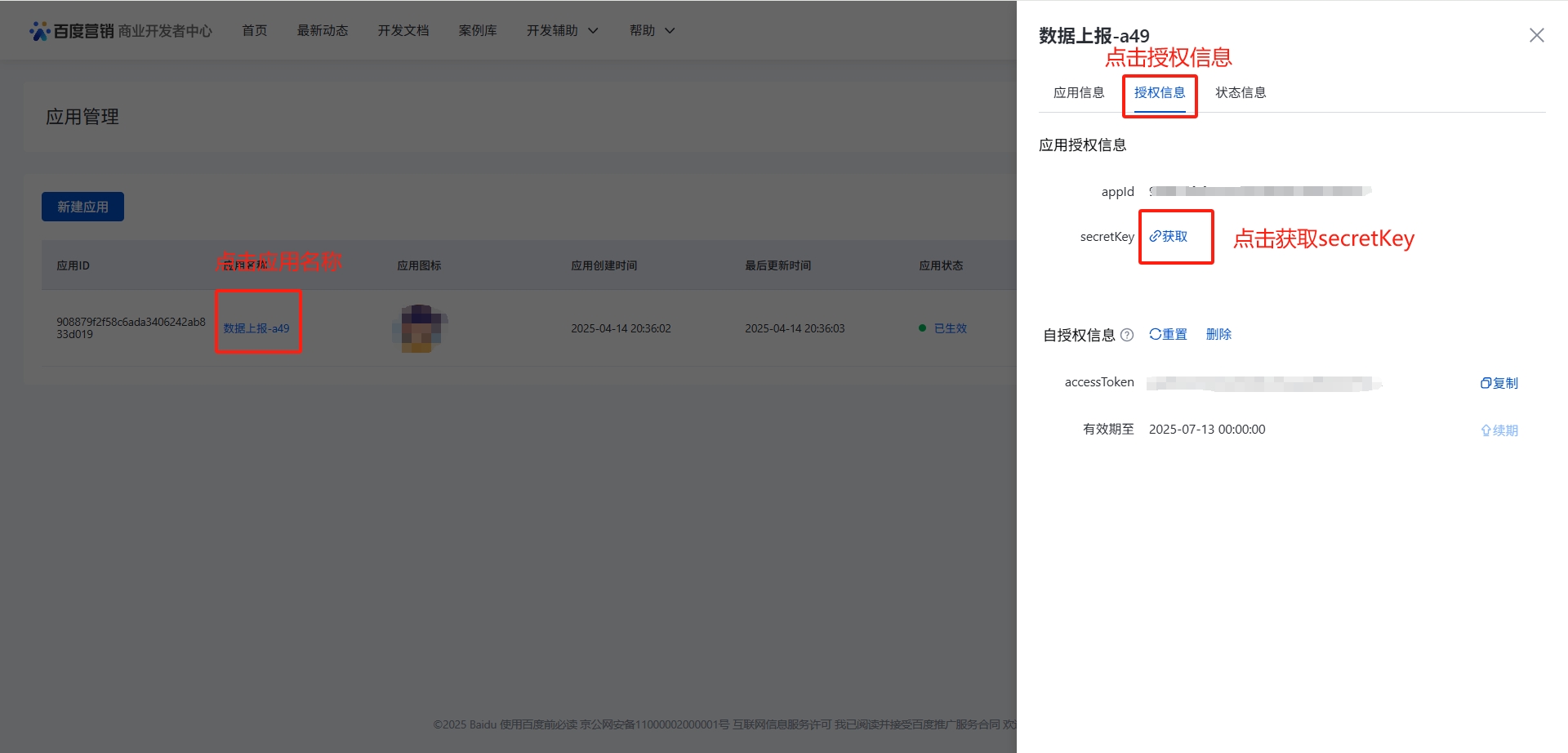 应用secretKey秘钥获取位置: