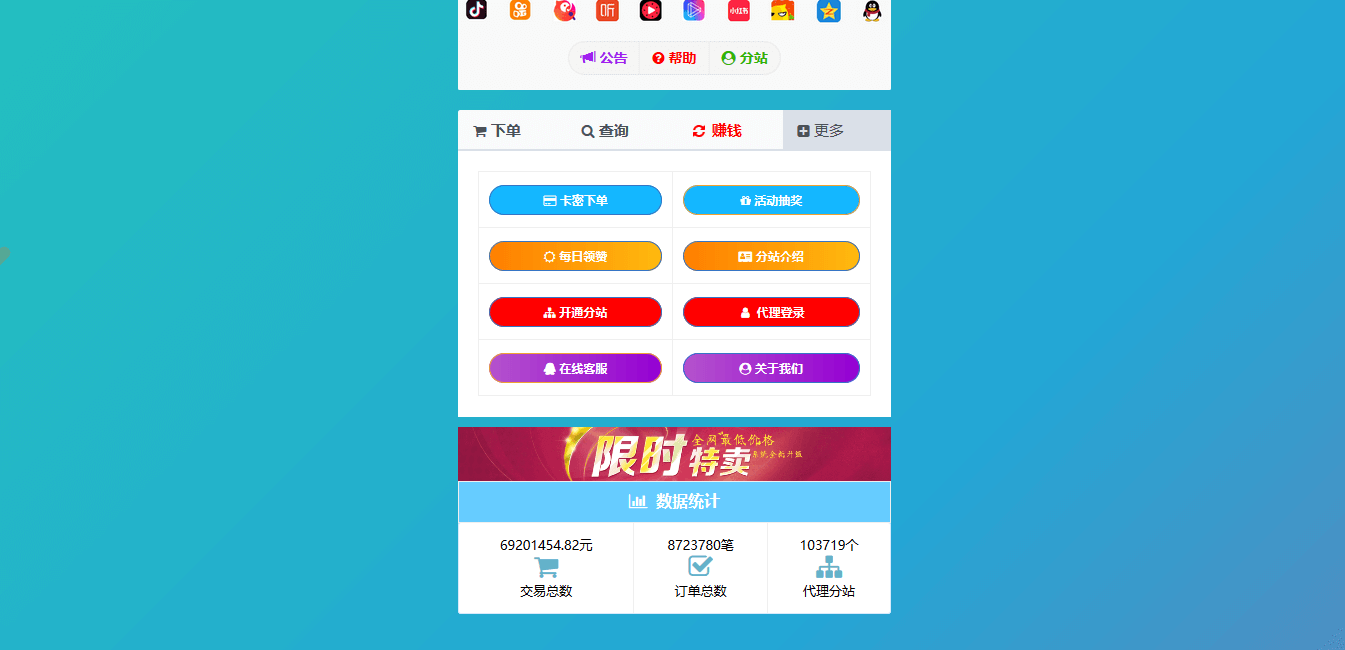 2、进入彩虹代刷后台找到模板设置选择 Cool模板,