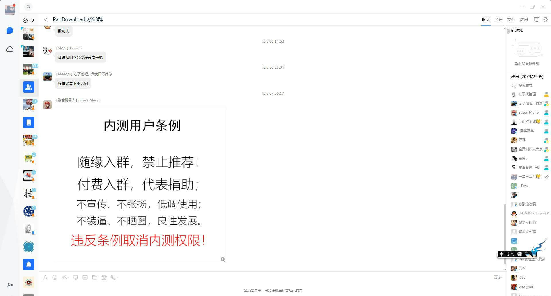 QQ群,向进群人员收取1至10元不等的进群费,群内提供更稳定的“Pandownload”内测版本。