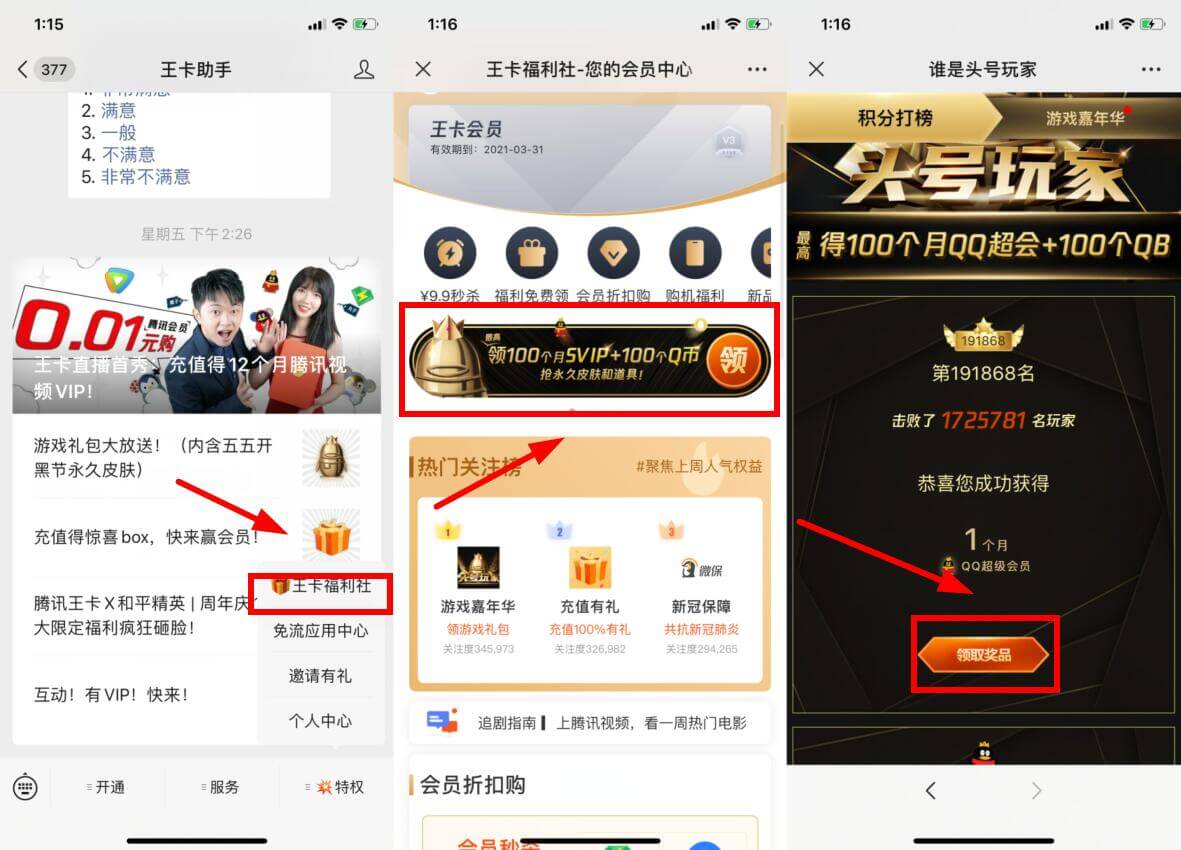微信关注公众号“王卡助手”->王卡福利社->点轮播图