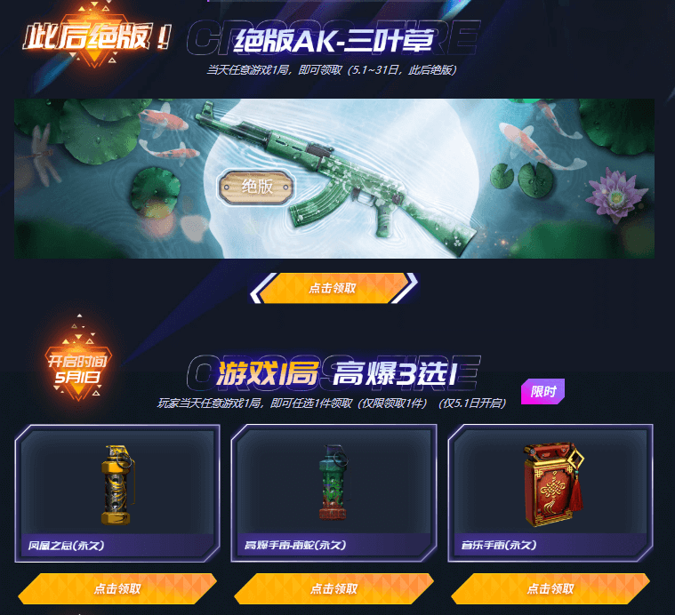 仅需在CF游戏当中玩一局游戏即可领取,绝版AK-三叶草