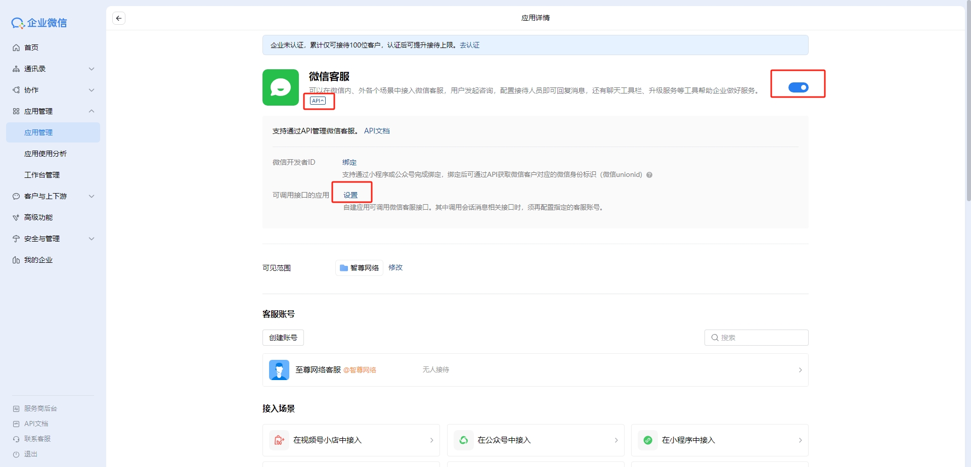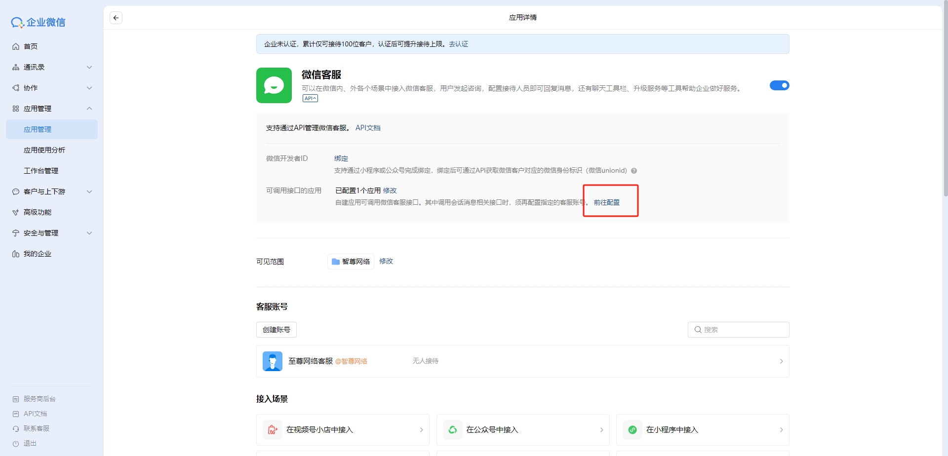 1、登录企业微信后台,找到应用管理开始创建应用(未认证也可以使用)