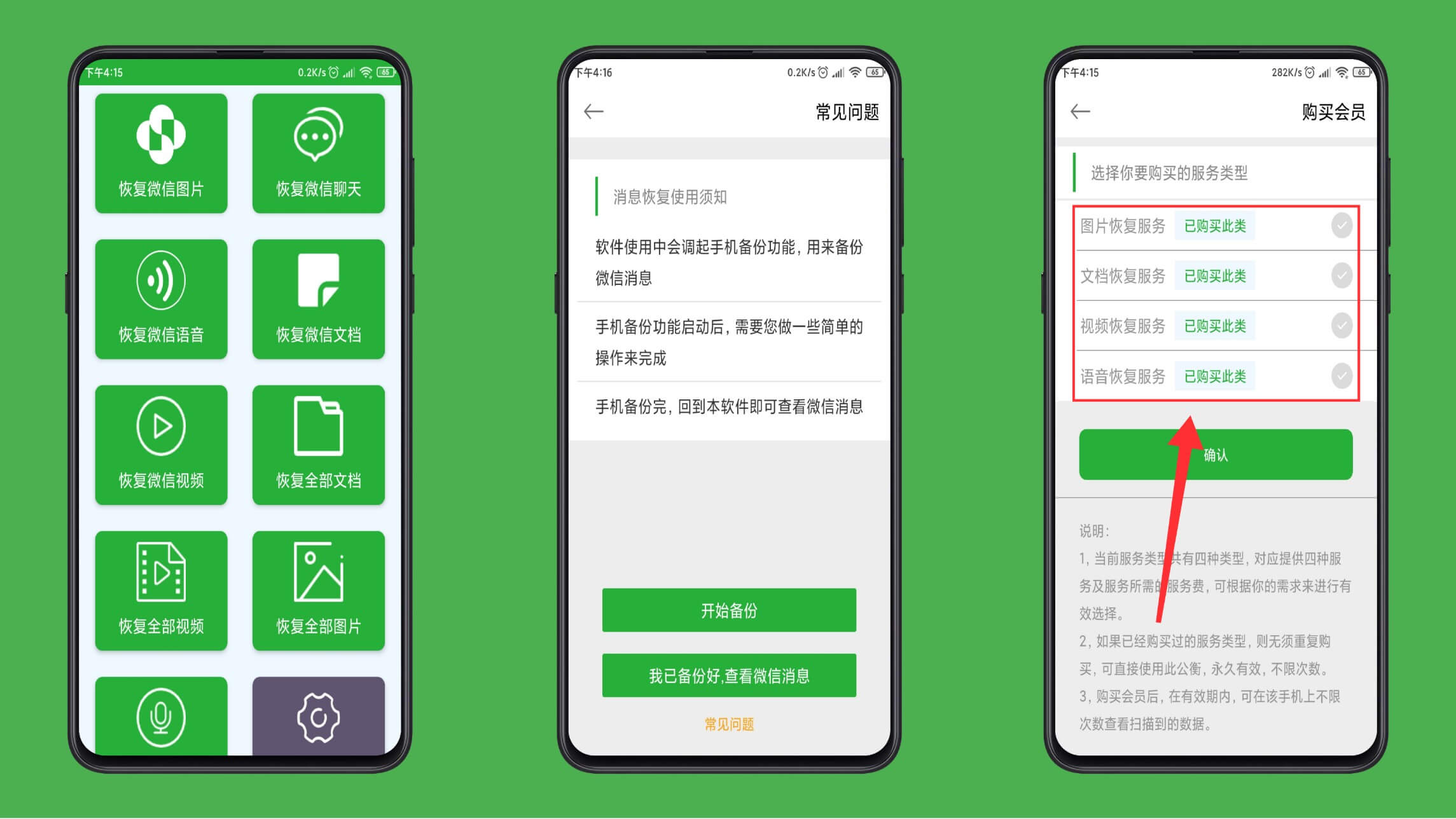 支持恢复内容:微信聊天记录、微信照片、微信语音、微信文件等等