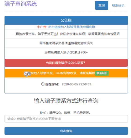 这是一款记录和查询QQ微信是否是骗子的网站源码。