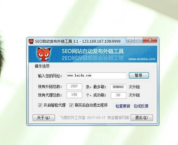 5、可设置刷外链次数,达到指定次数后程序自动停止或退出;