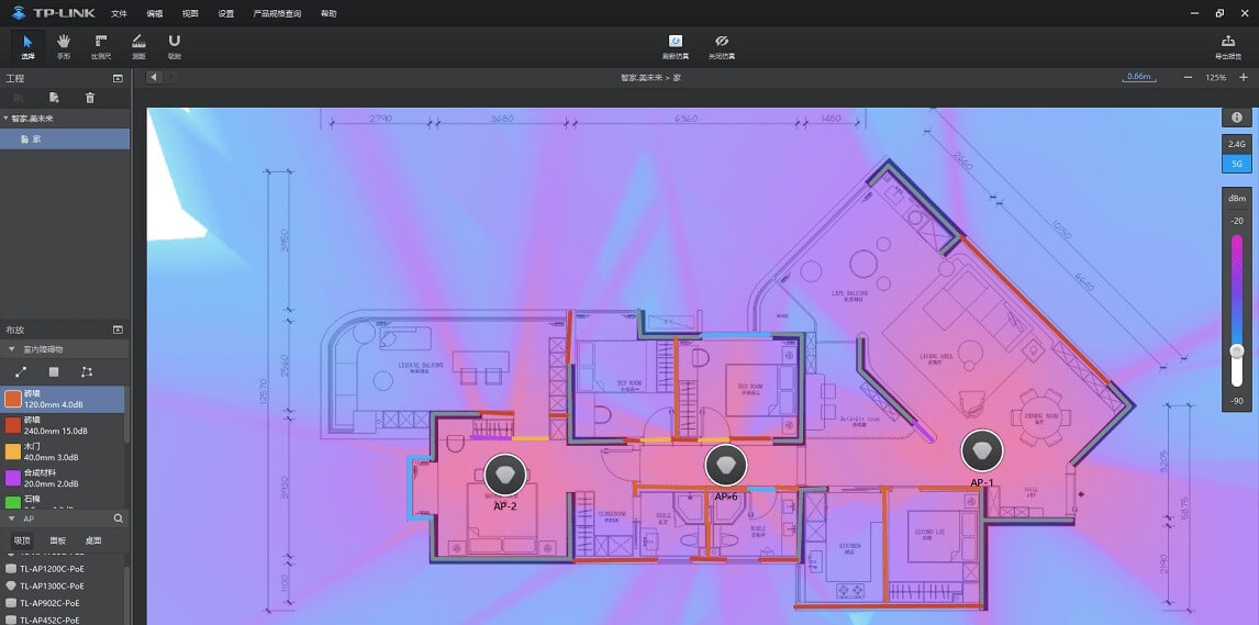 门在户型图上标出来,把tplink的网络设备摆上去,就可以测算在家里的各个位置的信号强度!