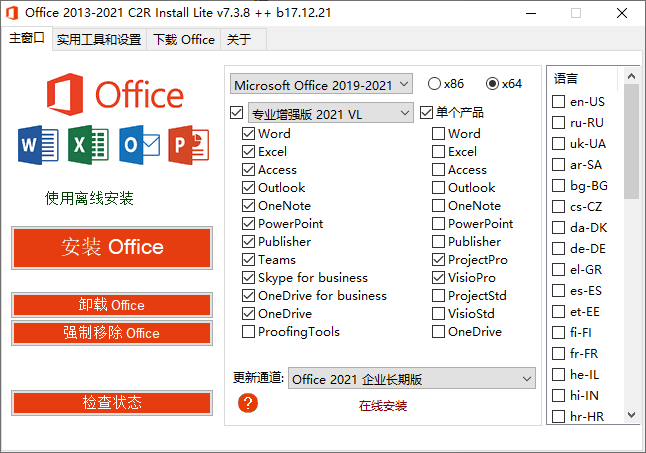 Office 2013-2019 C2R Install v7.3.5是由俄罗斯人Ratiborus制作的Microsoft Office下载、安装、管理的自定义部署工具。它可以在线下载安装 Office 2013-2019 的各个版本,离线安装部署Office镜像,自定义安装Office产品组件,支持Office零售版转换批量许可版,在线KMS激活Office,可选内置Office密钥许可证安装。